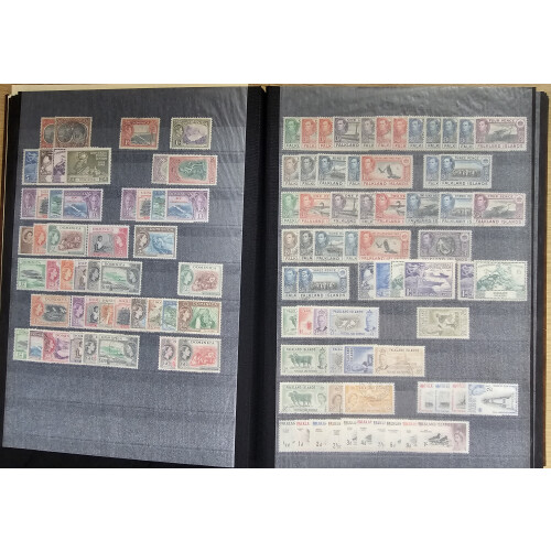 British Commonwealth - Large 64 sided stockbook with GVI/QEII mint or fine used part sets, sets and ranges with better throughout incl Ascension, Bahamas, Barbados, Bechuanaland, Bermuda, Cayman Is., Falkland Is. 1938 to 1/3d mint, to £1 used, Falkland Is. Deps 1954 Ships to 5s mint, Fiji, Gambia, Gibraltar GVI to 2s, Nyasaland GVI to 20s mint, Pitcairn Is. 1940 set m, Sarawak QEII to $5 mint, Sierra Leone to £1, S. Rhodesia to 5s, plus many more, 100s, clean lot.