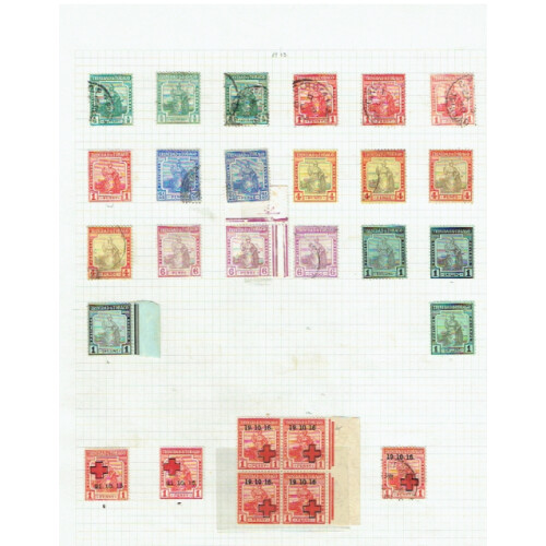 1913-1960 Mint & used collection on leaves including 1915 Red Cross with cross 2mm to right mint, 1916 Red Cross blk of 4 mint one with no stop after 16 variety, 1917-18 War Tax overprints complete for basic issues (incl SG 183/4 Cat £70), 1922-28 to 5s mint & used, 1935 SJ set mint, 1935 set to 72c mainly used, 1938 set, 1948 RSW set mint, attractive lot. (approx 160)